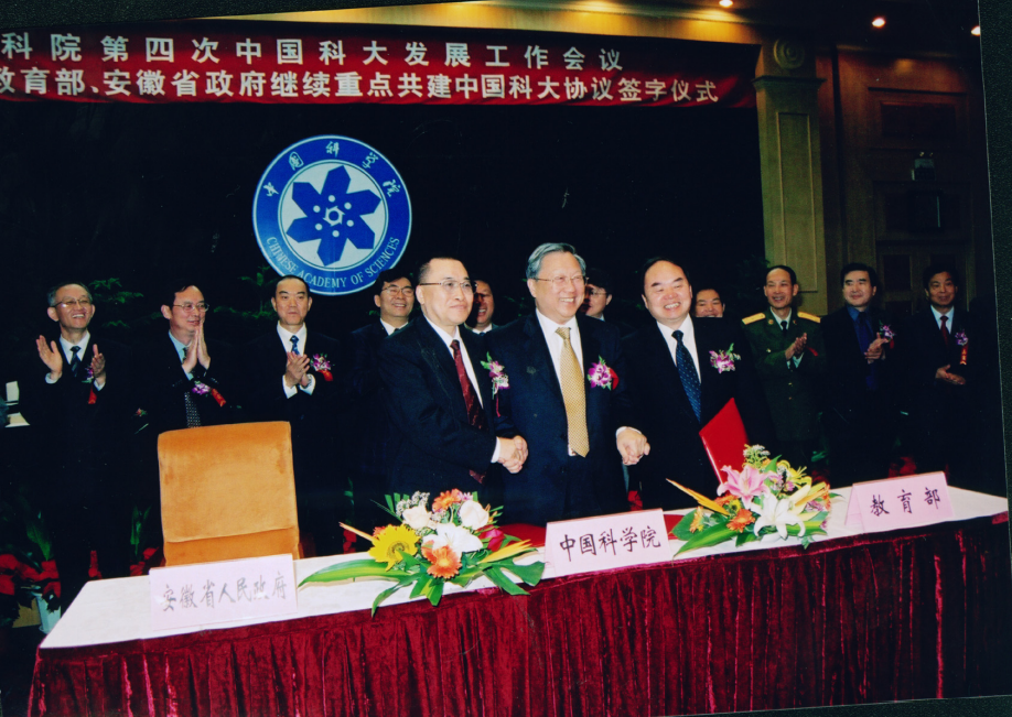 2004年10月12日,中国科学院第四次中国科大发展工作会议暨中国科学院、教育部、安徽省政府继续重点共建中国科大协议签字仪式在北京举行,对学校建设和发展具有重要指导意义。三方将以原则上不低于“985工程”一期9亿元的投入继续给予中国科大专项经费投入,进一步支持其创新平台建设、高层次人才队伍建设、基础设施建设和改造。中国科大也是首家通过签署共建协议启动实施“985工程”二期建设的高校,标志着中国科大步入一个新的发展阶段。