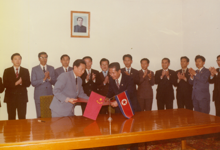 1985年10月27日,辛厚文副校长率团访问朝鲜理科大学,并签署两校合作计划