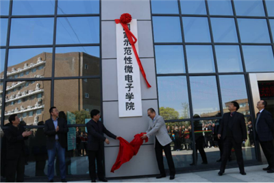 许武书记与张涛副所长共同为国家示范性微电子学院揭牌