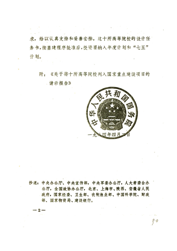 1984年4月2日,国务院批复同意中国科大等十所高校列入国家重点建设项目