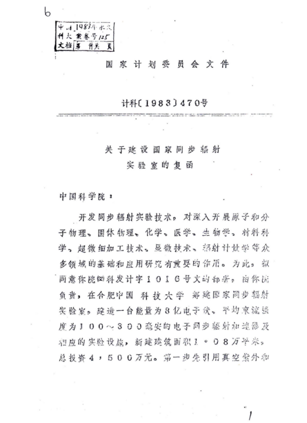 1983年4月8日,国家计委下发中国科学院《关于建设国家同步辐射实验室的复函》,正式批准我校建设国家同步辐射实验室。这是我国第一个“国家级的共用实验室”,实验室承担着我国高校中第一个大科学工程——合肥光源的建设。