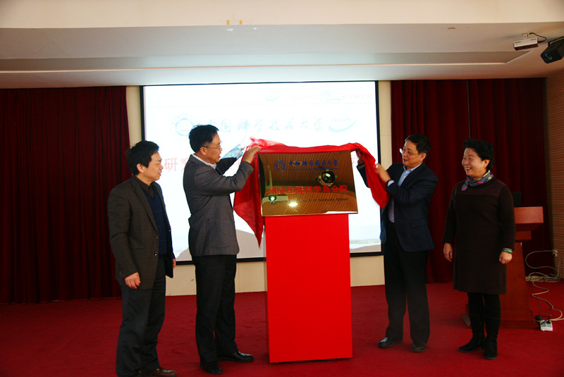 中国科大校长侯建国、副校长张淑林,合肥物质科学研究院院长匡光力、副院长万宝年共同揭牌